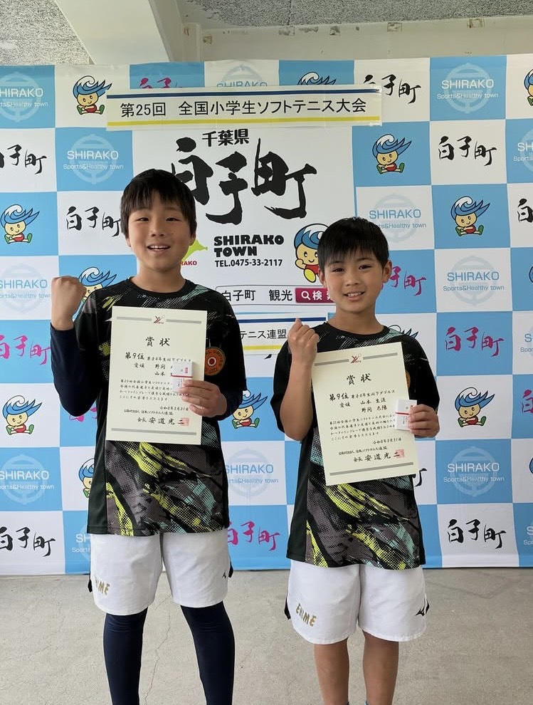 愛媛県選手が輝かしい成績を収めました。【小学生】 2026年4月5日 最終更新日時 : 2026年4月5日 kennrenn 第25回全国小学生ソフトテニス大会2026年3月31日 千葉県白子町4年生男子の部 9位山本生流・野間太陽(今治SOC)選手達の今後のご活躍に益々のご注目をお願い致します!